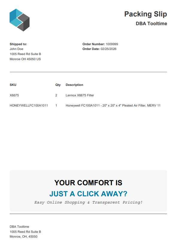 We are now able to add Branded Inserts to add even more brand recognition to your Filter Shipments. We require that you print your own inserts using a format similar to below: