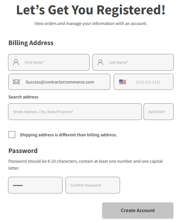 Clicking on this will open a sidebar that allows a user to sign in. If this is their first time signing in, they will need to register. Upon registering, all previous orders made with their email will populate within their profile.